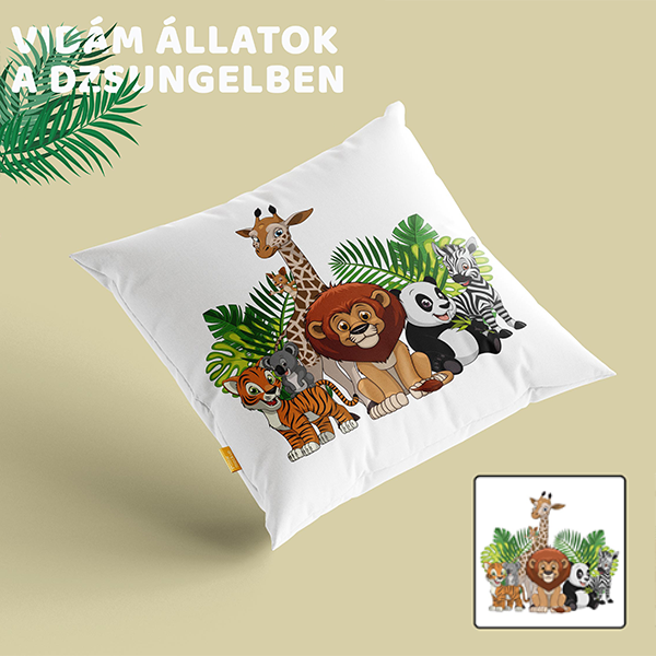 A huzat anyaga félszatén, szintetikus töltettel. 40x40cm. Mosás 30 fokon, azonos színű ruhákkal.